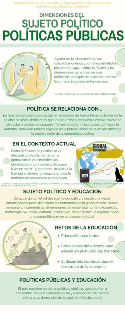 En esta publicación se presenta un análisis en torno a la comprensión del sujeto político desde las tensiones entre las políticas públicas, las reglas sociales, la formación de este y lo que le es posible construir, bajo las circunstancias de la realidad social (contexto).